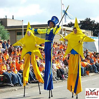 Zu jedem Jahresfest. Wir, das Theaterpaar Debby Goede und Walt Raaf, möchten Sie in unsere bezaubernde Welt des Straßentheaters entführen und Sie einladen uns einzuladen. Seit 25 Jahren findet man uns auf Festen, Märkten, Empfängen und auch in Konzertpausen. Zusammen mit 3 Sohnen spielen wir Stelzentheater aller Art.