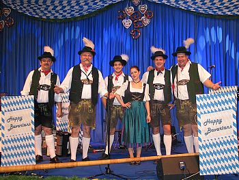 Bayrische Folklore - Tradition - Show Erleben Sie die weltweit erfolgreichen "Happy Bavarians" mit der "Kuhglockenkönigin Stefanie" und ihrer typisch bayrischen Show auf traditionellen Instrumenten (Alphorn, Kuhglocken, Löffel usw.), mit Jodler/-in, Schuhplattler (u.a. der "original Holzhacker Tanz") und Instrumentalsolisten. Von 1-20 Mann (Frau) weltweit buchbar. Holen Sie sich Ihr Oktoberfest!