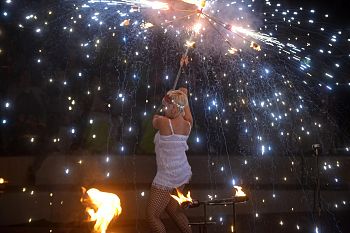 Ihr Background bestehend aus Theater und Tanz ermöglicht Sabrina Wolfram, die Genres Feuerartistik, Tanz und Gesang auf geniale Art und Weise miteinander verschmelzen zu lassen. Das Ergebnis ist sehenswert!