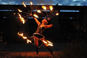Die ausgebildete Musicaldarstellerin und Choreografin Sabrina Wolfram fertigt außerdem maßgeschneiderte Feuershows für Produktpräsentationen, Theaterproduktionen und andere Anlässe an, die sich harmonisch in den Gesamtablauf der Veranstaltung integrieren lassen.