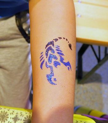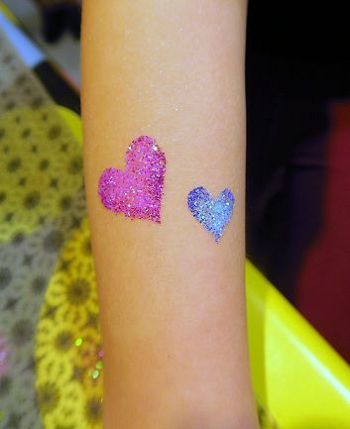 1) Airbrush-Tattoos werden in Minutenschnelle aufgesprüht, die Kinder müssen nicht lange warten. Die Tattoos halten mitunter mehrere Tage und sind für alle Altersgruppen geeignet, auch Erwachsene! 2) Auch Glitzertattoos halten mehrere Tage. 3) Kinderschminken geschieht auf die klassische Art mit Pinsel und hautfreundlichen wasserlöslichen Farben.