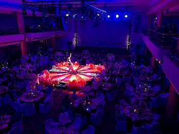 Wir bringen komplette Lichttechnik und Tontechnik für bis zu 300 pax. mit.