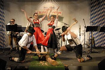 Bayrische Folklore - Tradition - Show Erleben Sie die weltweit erfolgreichen "Happy Bavarians" mit der "Kuhglockenkönigin Stefanie" und ihrer typisch bayrischen Show auf traditionellen Instrumenten (Alphorn, Kuhglocken, Löffel usw.), mit Jodler/-in, Schuhplattler (u.a. der "original Holzhacker Tanz") und Instrumentalsolisten. Von 1-20 Mann (Frau) weltweit buchbar. Holen Sie sich Ihr Oktoberfest!