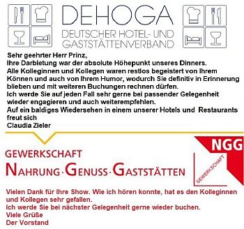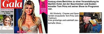 Die Darbietung von Tom Prinz ist charmant, humorvoll, verblüffend, manchmal etwas frech - doch immer mit Niveau. (aus dem Lifestyle Magazin Top)