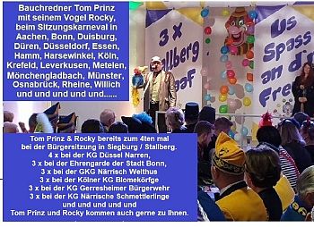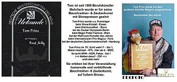 Tom Prinz - Gentleman der Bauchredner, Großmeister der Zauberkunst - bietet Ihnen humorvoll verblüffendes zur Familien- / Weihnachtsfeier, für Dinnershows, für Rheinkreuzfahrten, zum Karneval uvm.